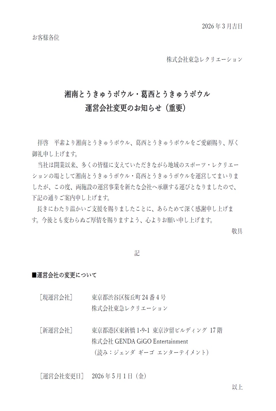 【運営会社変更のお知らせ】